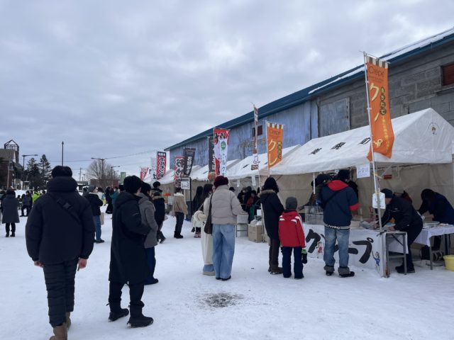 会場はJR美幌駅のすぐ横の特設会場。朝から雪の上に設けられたイベントスペースには、家族連れや地域の方々が集まり、にぎやかな雰囲気に包まれていました。