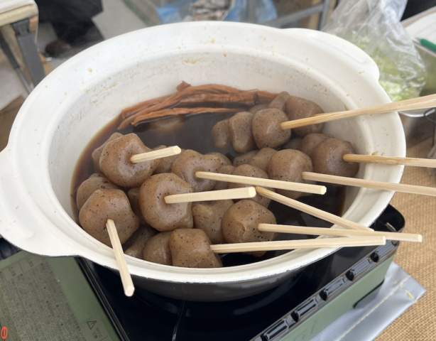 私は美幌で移住者として新規農業をされているさいこうファームさんの玉こんにゃくとホットぶどうジュースをいただきました!その他、約10事業者が出店しており寒い冬の中でほっと温まる時間になっていました。
